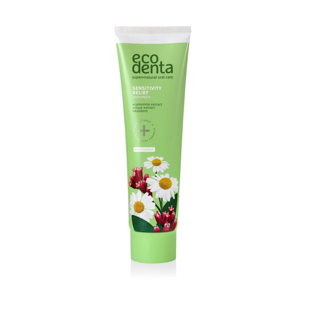 Ecodenta Tandpasta Gevoelige Tanden met KamilleECODENTA Tandpasta Gevoelige Tanden met Kamille kruidnagel extracten en Kalident is een tandpasta speciaal ontworpen voor de gevoelige tanden. Deze tandpasta heeft een tweedelig effect op gevoelige tanden: extracten van kamille en kruidnagel verlichten de gevoeligheid van de tanden en tandvlees. Daarnaast versterkt Kalident, een natuurlijke bron van calcium, het tandglazuur en helpt micro-scheurtjes en krassen in het tandglazuur te voorkomen. Om mer