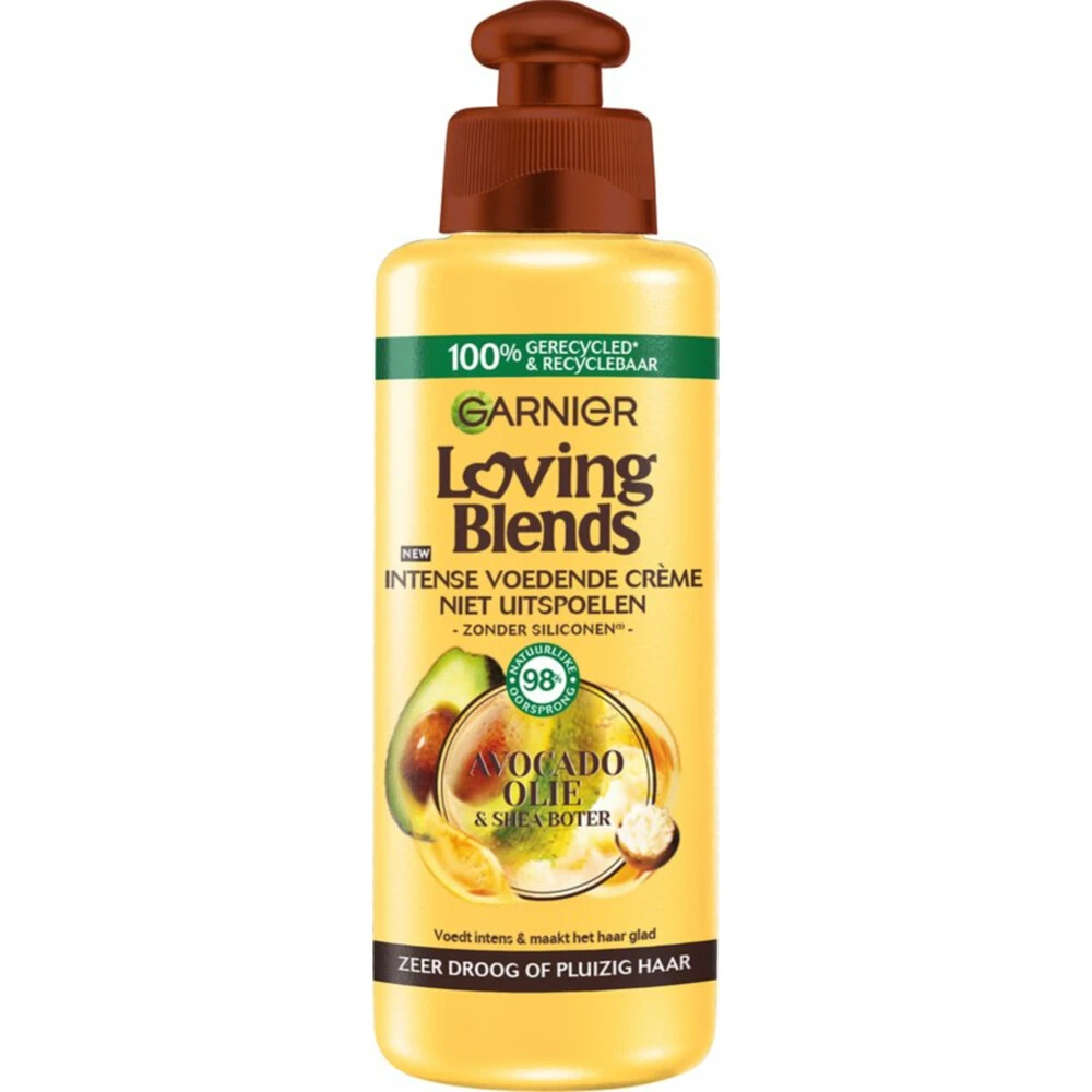 Garnier Loving Blends Avocado Olie & Karité Boter Leave-in crème 200 mlHet ultieme voedende recept met avocado olie en karité boter voor zeer droog of pluizig haar. Voedt, verzacht en versoepelt het haar en maakt het direct makkelijk doorkambaar.