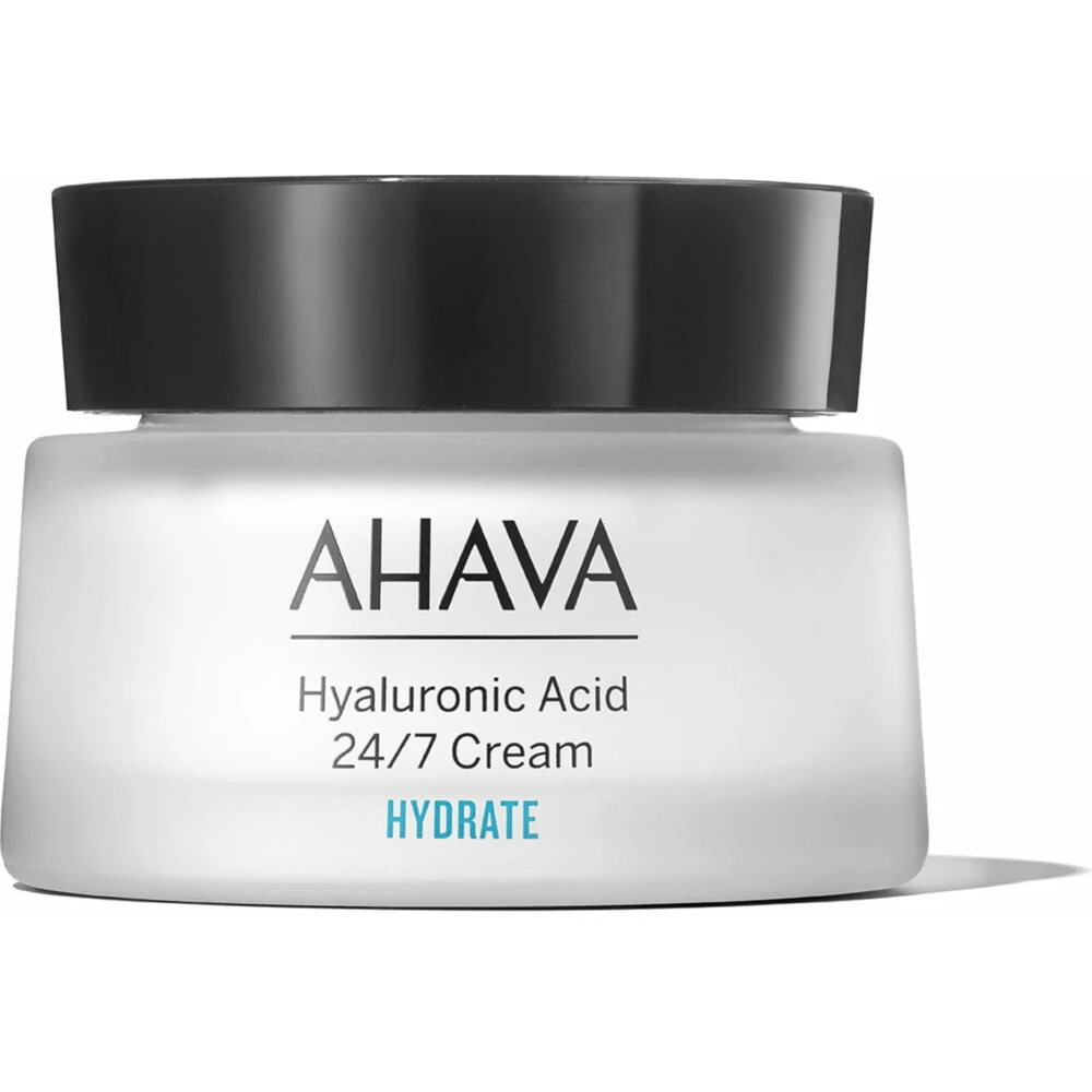 Ahava Hyaluronic Acid 24/7 GezichtscrèmeAhava Hyaluronic Acid 24/7 Cream 50 ml verbeterd de hoeveelheid vocht in de huid. Deze crème laat je huid zacht, fijn en gehydrateerd aanvoelen. En dat wel 24 uur lang. De droge huid wordt gehydrateerd en ziet er mooier en gladder uit. Ook verbetert het de huidtextuur waardoor anti-aging wordt gecreëerd. Door de dode zeemineralen wordt het hyaluronzuur gestimuleerd en maakt deze sneller aan in de huid.Verbeterd vocht inhoudZachte en gehy