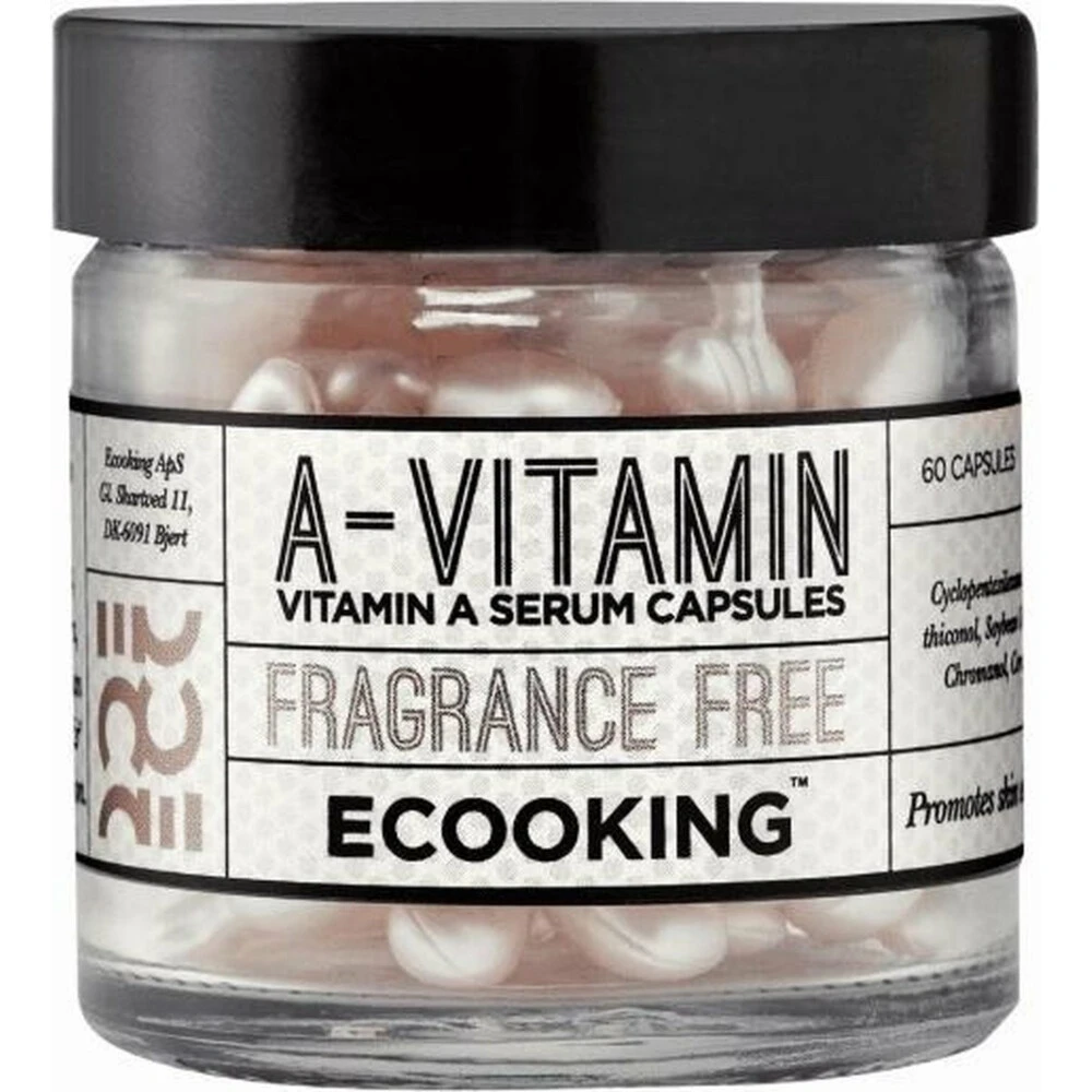 Ecooking Vitamine A Serum – 60 CapsDe Vitamine A Serum van Ecooking is een vegan parfumvrije gezichtsserum met rijke eigenschappen aan vitamine A. Door de antioxidanten stimuleert het de vochtbalans en bevordert de genezing van de huid tegen invloeden van buitenaf. Het werkt antiseptisch bij kleine vlekjes en is geschikt voor de droge huid. VeganParfumvrij