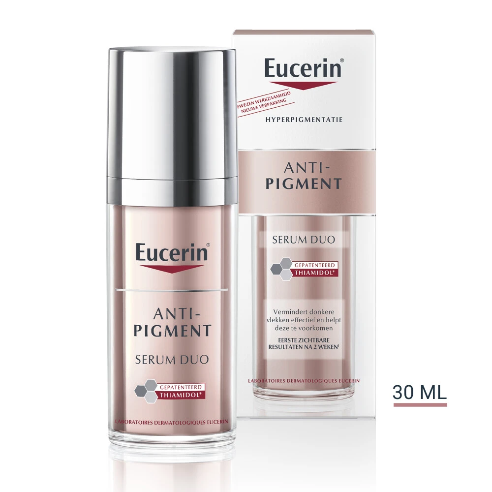 Eucerin Serum Anti-Pigment Melanine is een natuurlijk pigment dat de huid kleur geeft. Door blootstelling aan zonlicht, hormonale invloeden en huidveroudering kan de productie van melanine toenemen, wat hyperpigmentatie veroorzaakt. Hyperpigmentatie verschijnt als donkere vlekken en ouderdomsvlekken (ook wel zonnevlekken genoemd) die de huid een ongelijkmatige indruk geven.Eucerin Serum Anti-Pigment vermindert pigmentvlekken en voorkomt dat ze terugkomen. Vernieuwt de uitstraling van de hui